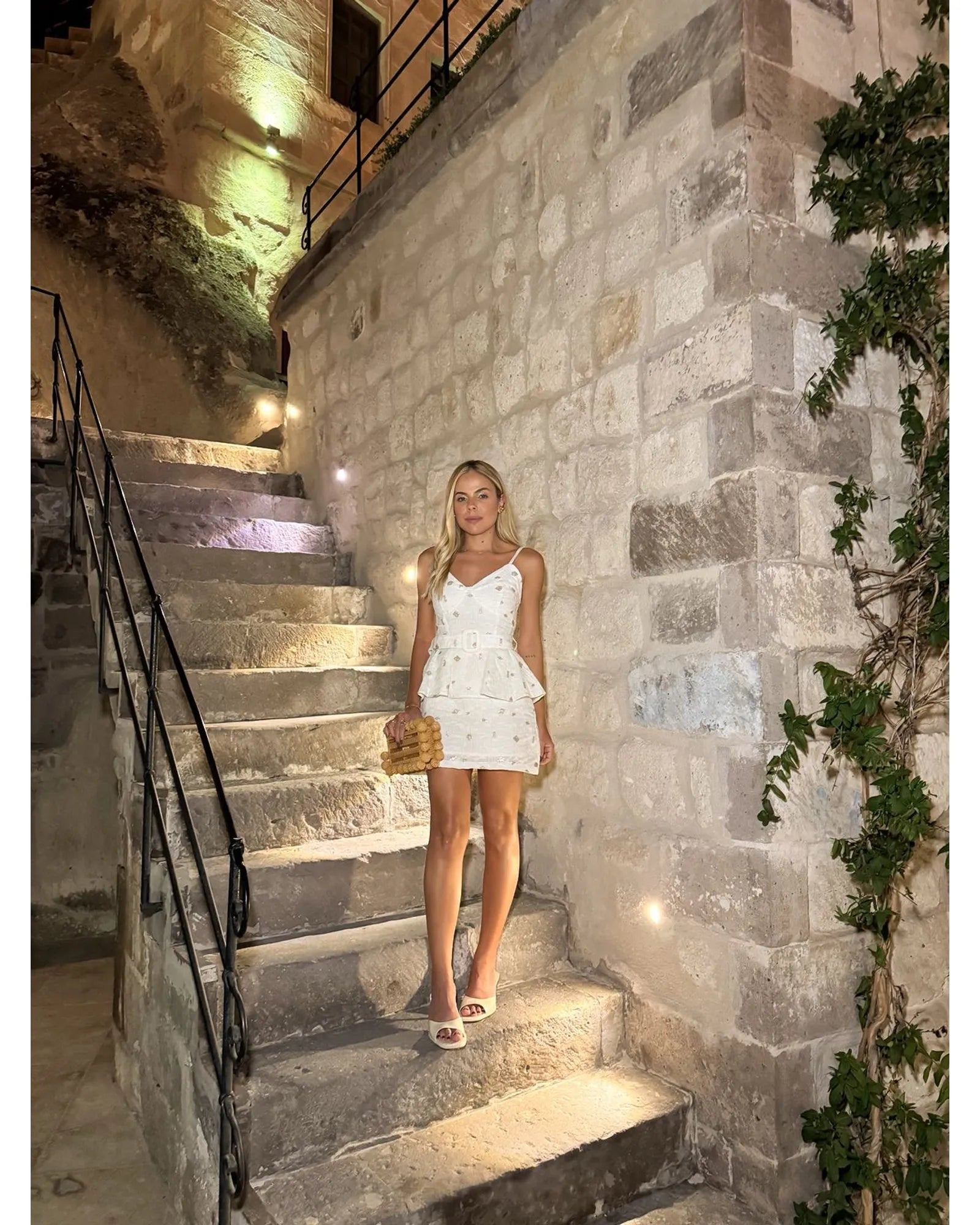 Este conjunto é a tradução perfeita do luxo artesanal com estética delicada e contemporânea. Confeccionado em algodão bordado com aplicação de mini paetês dourados, ele brilha de forma sutil e sofisticada — ideal para ocasiões especiais durante o dia ou à noite. A blusa estruturada apresenta modelagem ajustada com decote em V e alças finas, realçando a feminilidade com elegância. O fechamento nas costas com zíper invisível proporciona praticidade sem comprometer o caimento impecável. A saia possui shape reto e acompanha um cinto exclusivo com fivela 100% feita à mão, que remete ao trabalho em crochê — um detalhe precioso que valoriza ainda mais o conjunto. Toda a peça é forrada com algodão leve, garantindo conforto e segurança no uso. Rica em acabamentos e com presença marcante, essa produção é ideal para quem busca um visual elaborado com leveza e sofisticação artesanal.