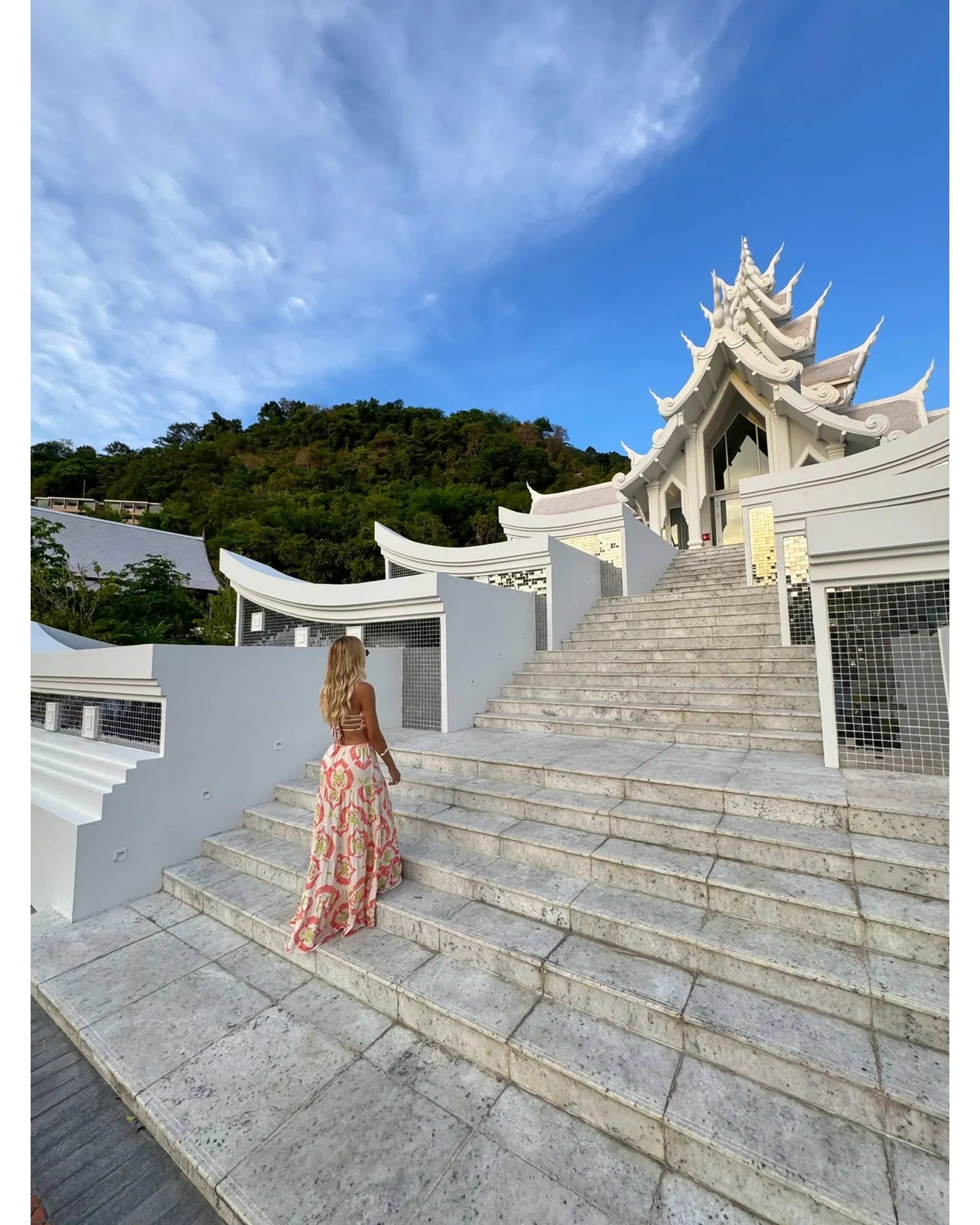 Um vestido que traduz feminilidade, frescor e sofisticação em cada detalhe. Confeccionado em viscose leve e fluida, forrado, garantindo conforto e segurança sem perder a leveza do caimento. A estampa com inspiração tropical e cores vibrantes que iluminam a produção. O busto franzido com delicado detalhe de babadinho adiciona romantismo à peça, enquanto os recortes estratégicos na cintura proporcionam sensualidade equilibrada. O grande destaque fica por conta do decote nas costas com amarração em tiras finas, que confere modernidade e charme, além de permitir melhor ajuste ao corpo. A saia longa e esvoaçante acompanha o movimento, criando uma silhueta elegante e sofisticada. Versátil e impactante, é a escolha ideal para ocasiões especiais, jantares ao pôr do sol, viagens e eventos que pedem um look com presença marcante e frescor contemporâneo.